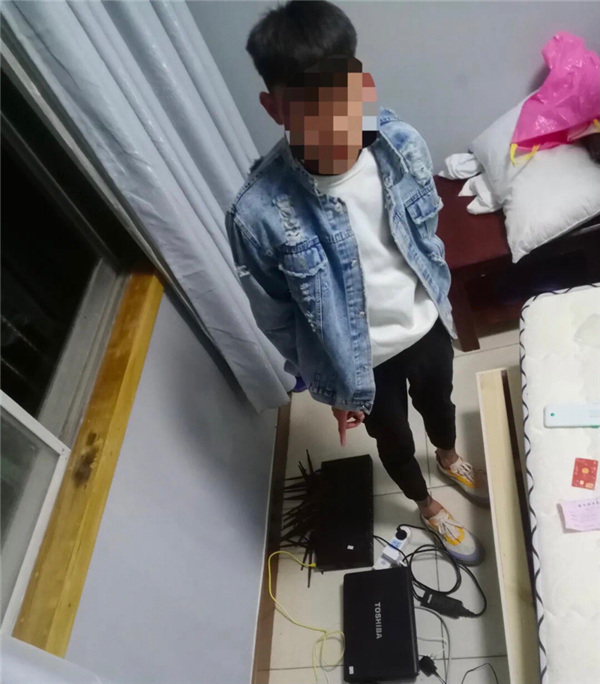 經(jīng)過3天3夜的蹲守,辦案民警摸清了犯罪嫌疑人的活動(dòng)軌跡,10月13日晚上,吳臺(tái)派出所所長朱浩宇帶領(lǐng)民警賈坤陽等人果斷出擊,成功搗毀該涉詐窩點(diǎn),將嫌疑人覃某宗和陳某欽抓獲,查獲“GOIP”設(shè)備1臺(tái)、電腦2臺(tái)、手機(jī)2部、路由器1臺(tái)、攝像頭1個(gè)。