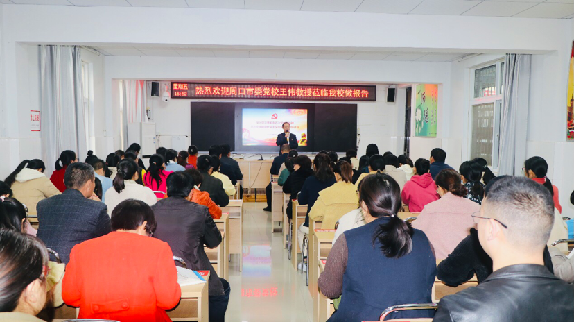宣講會(huì)上,市委黨校宣講團(tuán)講師王偉以“深入學(xué)習(xí)貫徹市五次黨代會(huì)精神、開(kāi)啟全面建設(shè)社會(huì)主義現(xiàn)代化周口新征程”為主題,從充分認(rèn)識(shí)市五次黨代會(huì)的重大意義、準(zhǔn)確把握市五次黨代會(huì)的精神要義、全面落實(shí)市五次黨代會(huì)的目標(biāo)任務(wù)三方面,詳盡解讀了市五次黨代會(huì)主旨報(bào)告的精神實(shí)質(zhì)和豐富內(nèi)涵。整場(chǎng)報(bào)告脈絡(luò)清晰、論述深刻、內(nèi)容豐富,既有深入淺出的理論闡述,又有結(jié)合我市發(fā)展的實(shí)例分析,更有教育實(shí)踐層面的對(duì)策思考,為該校教職工深入、完整、系統(tǒng)地領(lǐng)會(huì)市五次黨代會(huì)精神,有力推進(jìn)貫徹落實(shí)黨代會(huì)精神提供了一把“金鑰匙”。