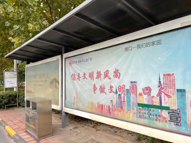 公交站臺作為城市文化傳播的符號之一,對城市形象的提升有著重要意義。10月26日,記者走訪了我市中心城區(qū)公交候車臺,隨處可見的公益廣告牌引人注目,“文明與你同行,創(chuàng)建從我做起”“倡導(dǎo)文明新風(fēng)尚,爭做文明周口人”“舉全市之力,聚萬眾之心,創(chuàng)文明城市,建和諧周口”,一句句文明標(biāo)語為周口創(chuàng)建全國文明城市增光添彩。