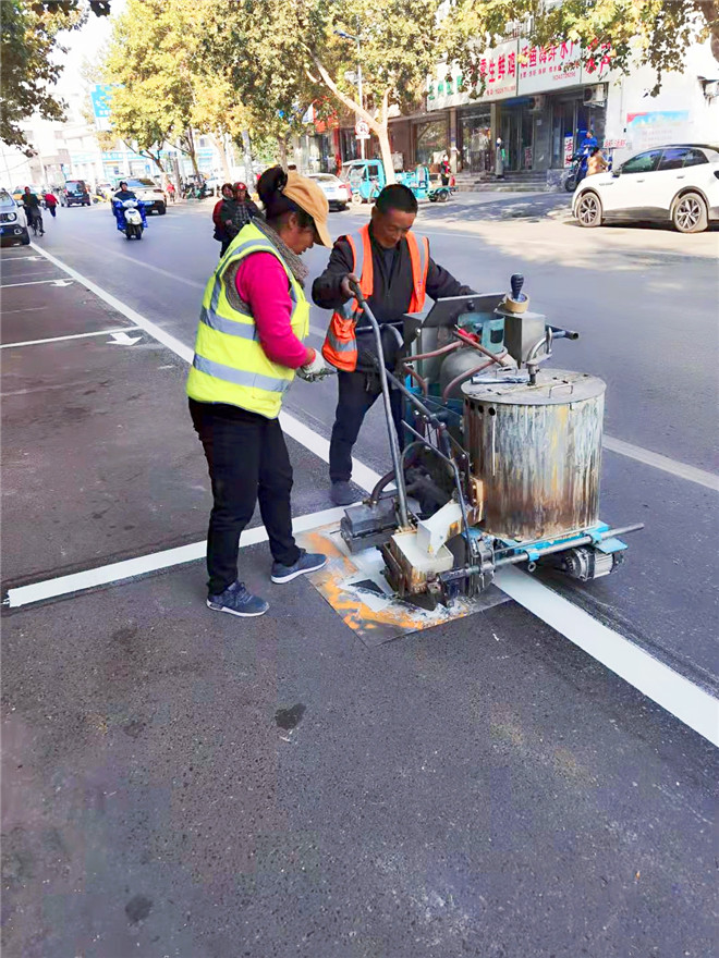 10月26日晚6時(shí)許,在周口大道與文體路交叉口附近,幾名工作人員正在使用熱熔畫線機(jī),對路面上不太清晰的斑馬線進(jìn)行重新施劃?!奥访鏄?biāo)線是公路的‘無言哨兵’,覆畫后的道路交通標(biāo)線醒目美觀,一方面消除了安全隱患,保障了交通安全和暢通,另一方面也極大地美化、扮靚了沿線路域環(huán)境,成為城市文明的一道風(fēng)景線?!痹撠?fù)責(zé)人說。