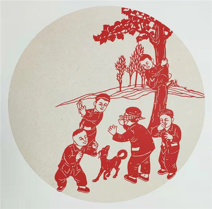 透過紅紙,有的孩童正神采飛揚地玩捉迷藏,有的正有模有樣地幫著長輩干農(nóng)活,還有的在乖巧地看長輩下象棋……為助力全國文明城市創(chuàng)建,表達對健康生活的熱愛,近日,周口剪紙非遺傳承人劉秀華創(chuàng)作出了一組“童趣”剪紙作品。