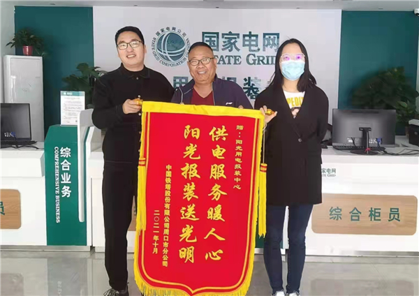 “供電公司的陽光業(yè)擴(kuò)報裝服務(wù)真不錯,我們申請用電只需要在網(wǎng)上提交材料,有什么不清楚不明白的,電話就能直接溝通。我們的一個5G基站點(diǎn)最快用了不到3天就完成了用電報裝流程,這服務(wù)效率,值得我們學(xué)習(xí)??!”近日,在國網(wǎng)周口供電公司陽光報裝中心,中國鐵塔股份有限公司周口分公司業(yè)務(wù)經(jīng)理朱義嶺一邊將印有“供電服務(wù)暖人心 陽光報裝送光明”的錦旗遞給供電工作人員,一邊感謝該公司對鐵塔基站建設(shè)提供的支持。