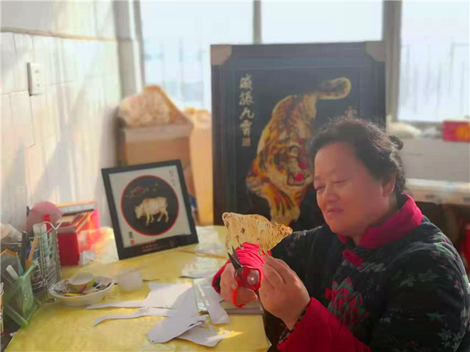 創(chuàng)作秸稈畫不易,傳承秸稈畫更為不易。針對秸稈畫等民間藝術的傳承問題,王春梅有著自己的看法。“要創(chuàng)新民間文化的時代內涵。以我的秸稈畫為例,大部分還是停留在山水、花鳥、人物的創(chuàng)作上,應該嘗試結合當下‘90后’和‘00后’的個性需求,開發(fā)出適合該年齡段的卡通產品、動漫產品。同時在中小學開展的社會活動中,加入民間文化的相關內容,定期舉辦各項展演和賽事,讓青少年參與其中,積極儲備后備力量。”王春梅說。