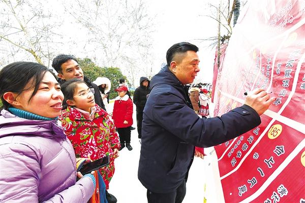 2月24日,市民踩著冰雪,來到周口華威民俗文化博物苑,參加在這里舉行的“我們的中國夢——文化進萬家”“百花迎新樂中原”2024周口元宵節(jié)燈謎競猜活動。