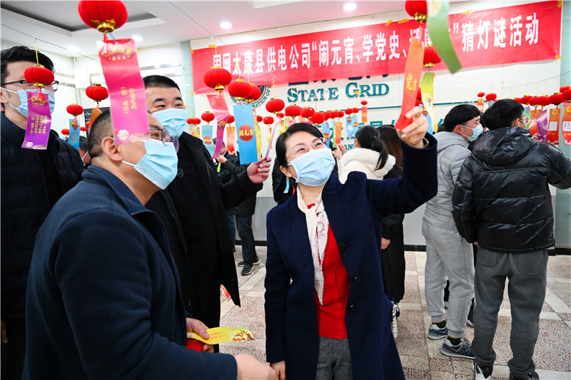 2月15日,為慶祝元宵佳節(jié),太康縣供電公司舉行“鬧元宵、學(xué)黨史、話廉潔”猜燈謎活動(dòng)。燈謎不僅涵蓋黨紀(jì)法規(guī)、黨史知識,還將廉潔文化融入其中,既有趣味性,又有知識性,活躍了節(jié)日氣氛。