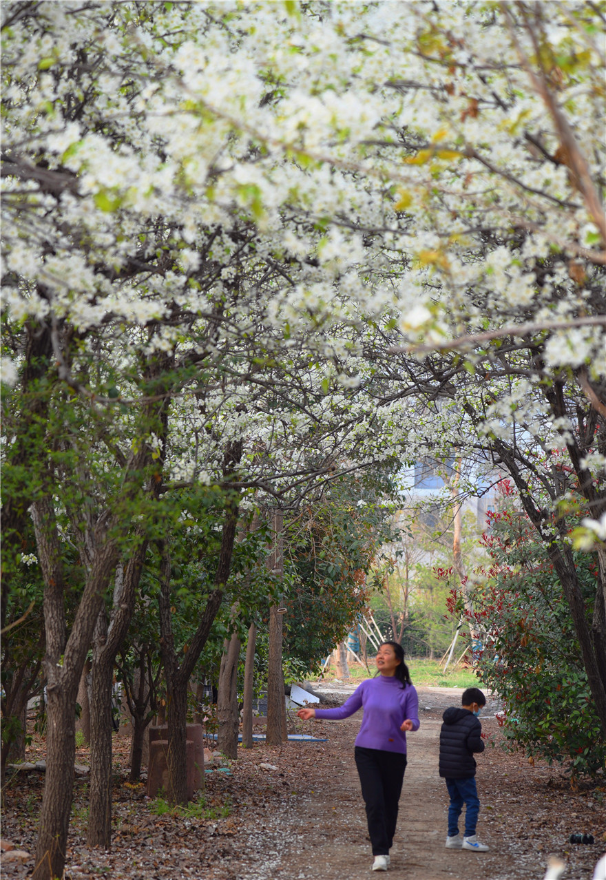 3月26日,周口市天氣晴好,植物園內(nèi)岸柳青青、鶯飛草長(zhǎng)。園內(nèi)的梨花正是盛開時(shí),不少市民在此駐足觀賞拍照。②8