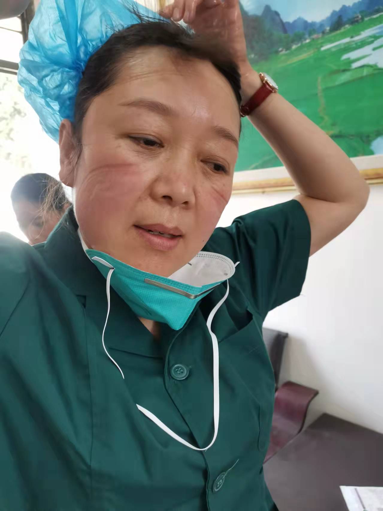 10多天來,雷雪玲總是早出晚歸,穿著厚厚的隔離服,戴著橡膠手套、防護眼鏡、帽子和面罩,套著過膝的腳套,連續(xù)工作數(shù)十個小時,期間不能上衛(wèi)生間、不能喝水,甚至不能擦擦汗。天氣寒冷,但是一天工作下來,她總是被厚厚的防護服悶得汗流浹背,手被泡得發(fā)白,臉上也被口罩勒出層層痕跡,加上本來就患有心臟病的她,經常會體力不支,但是她卻不顧病痛的折磨,從未請過一次假,每天都堅持帶病入戶采樣。晚上工作結束,她的雙腿已經麻木,也顧不上休息片刻又匆忙準備第二天檢測需要的試劑,有時為了方便早上出發(fā),她直接和衣而臥。她的這種不怕苦,不怕累,舍小家為大家的犧牲精神深深感動著每一位醫(yī)護人員!