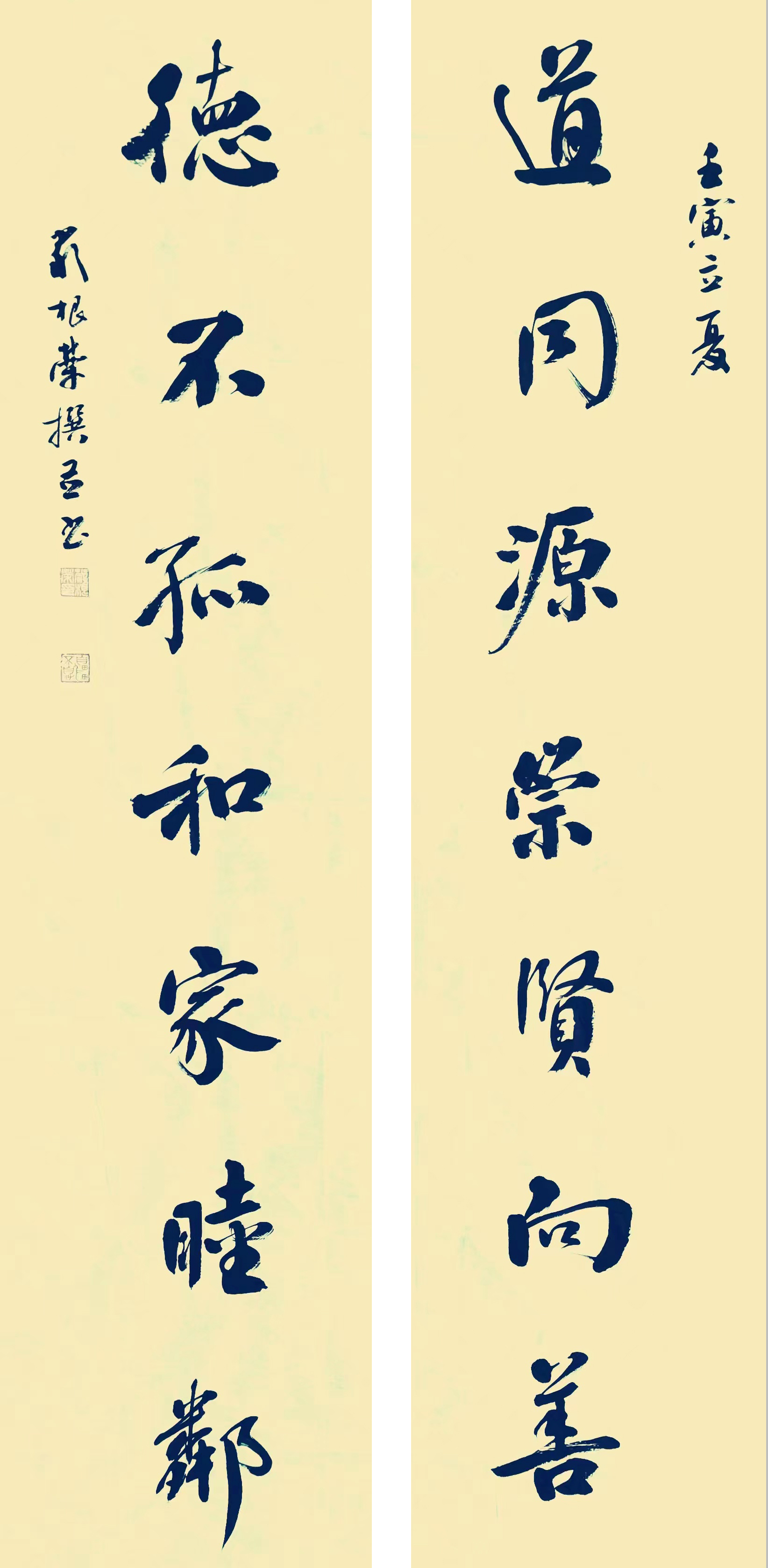 嚴根榮 中國書法家協會會員,西華縣書法家協會副主席(對聯:道同源崇賢向善 德不孤和家睦鄰)