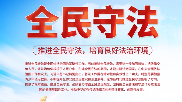推進(jìn)全民守法是全面依法治國的基礎(chǔ)性工作。當(dāng)前推進(jìn)全民守法,需要進(jìn)一步加強(qiáng)普法,把法律交給人民,讓法治信仰根植于人民心中,形成全民守法的氛圍,才能共建法治國家。