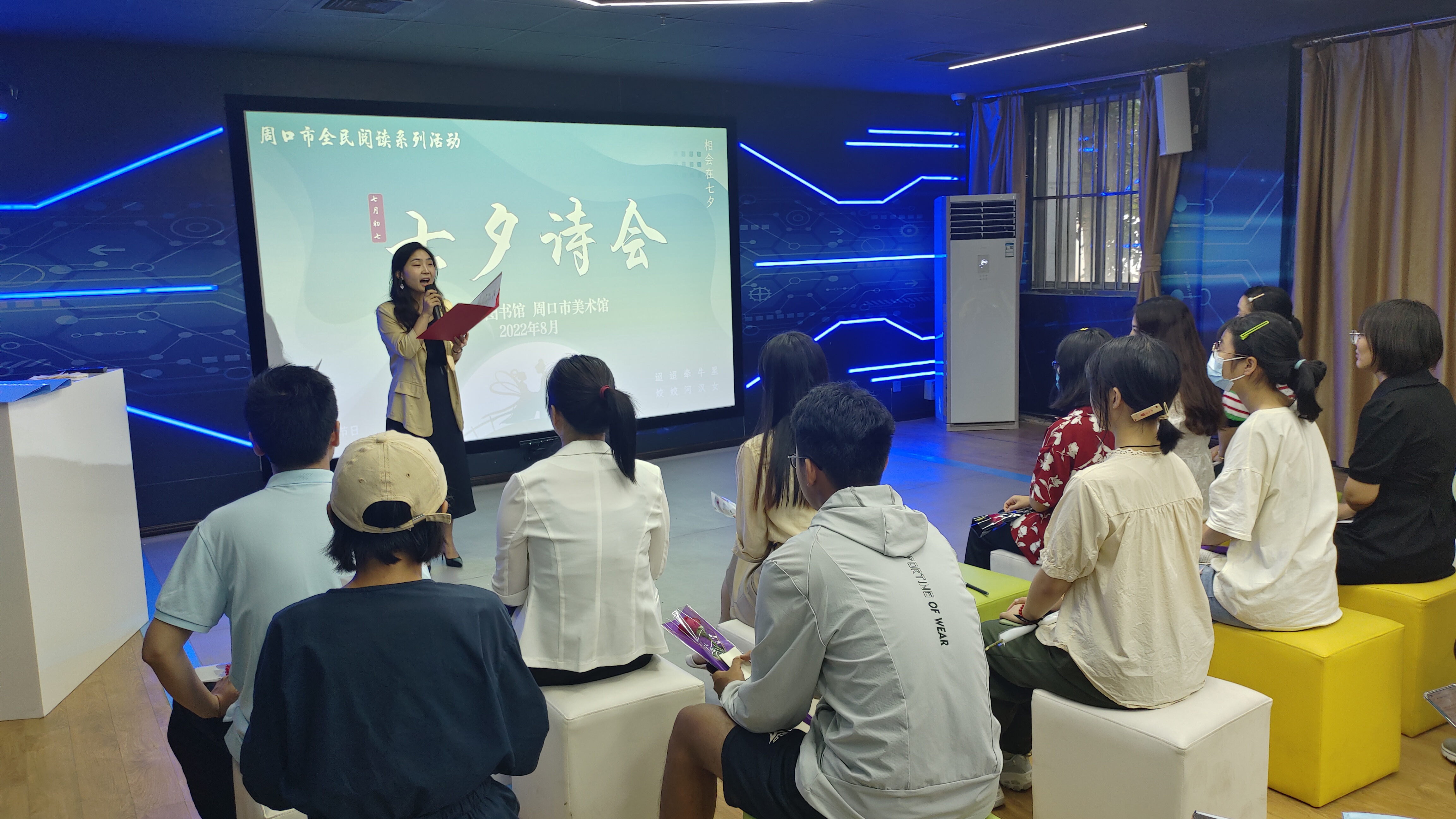 8月4日,市圖書館與市美術館在一樓智慧空間共同舉辦七夕詩會,以詩傳情,開啟中國式浪漫,20多名詩詞愛好者參加活動。