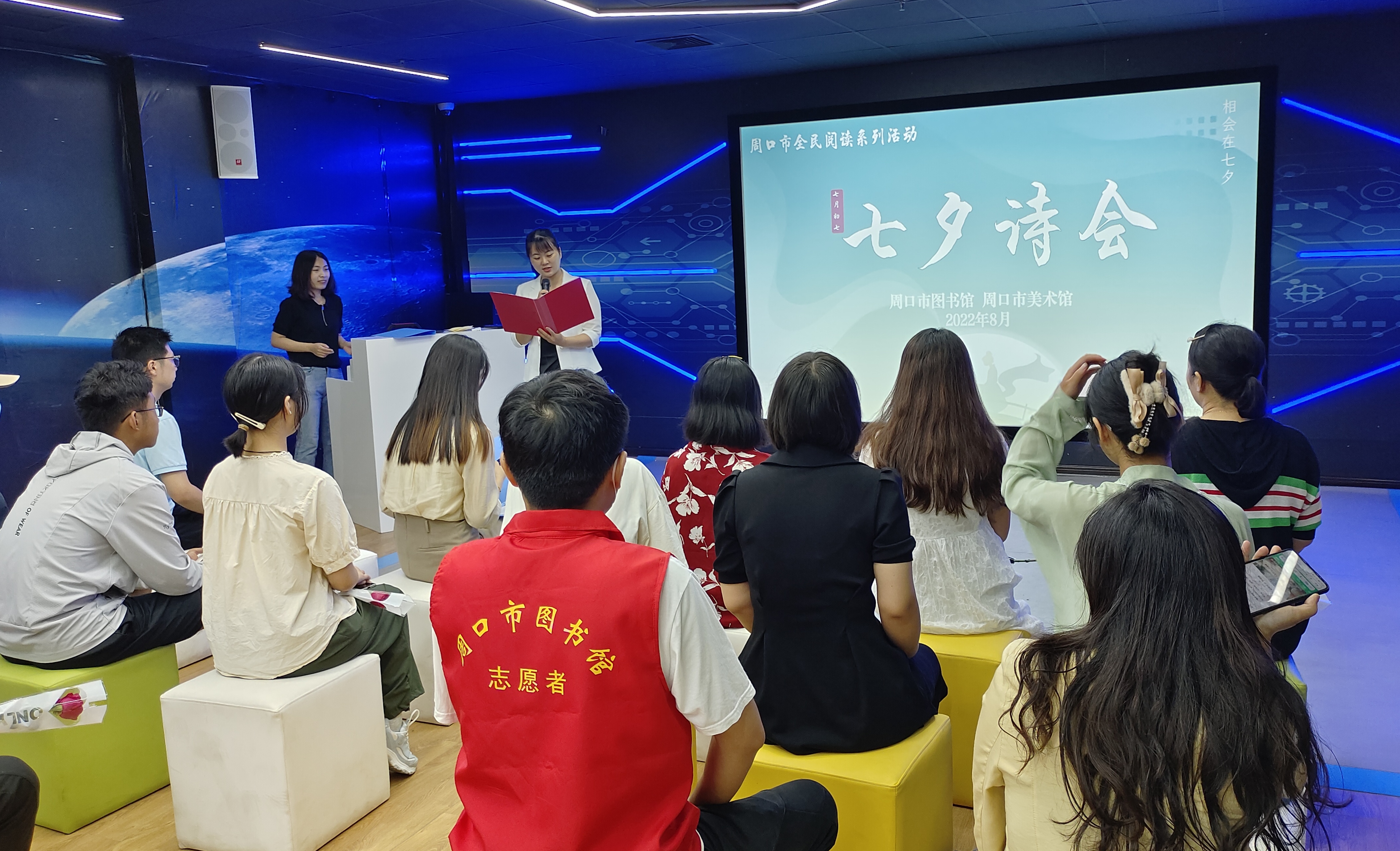 8月4日,市圖書館與市美術(shù)館在一樓智慧空間共同舉辦七夕詩會,以詩傳情,開啟中國式浪漫,20多名詩詞愛好者參加活動。