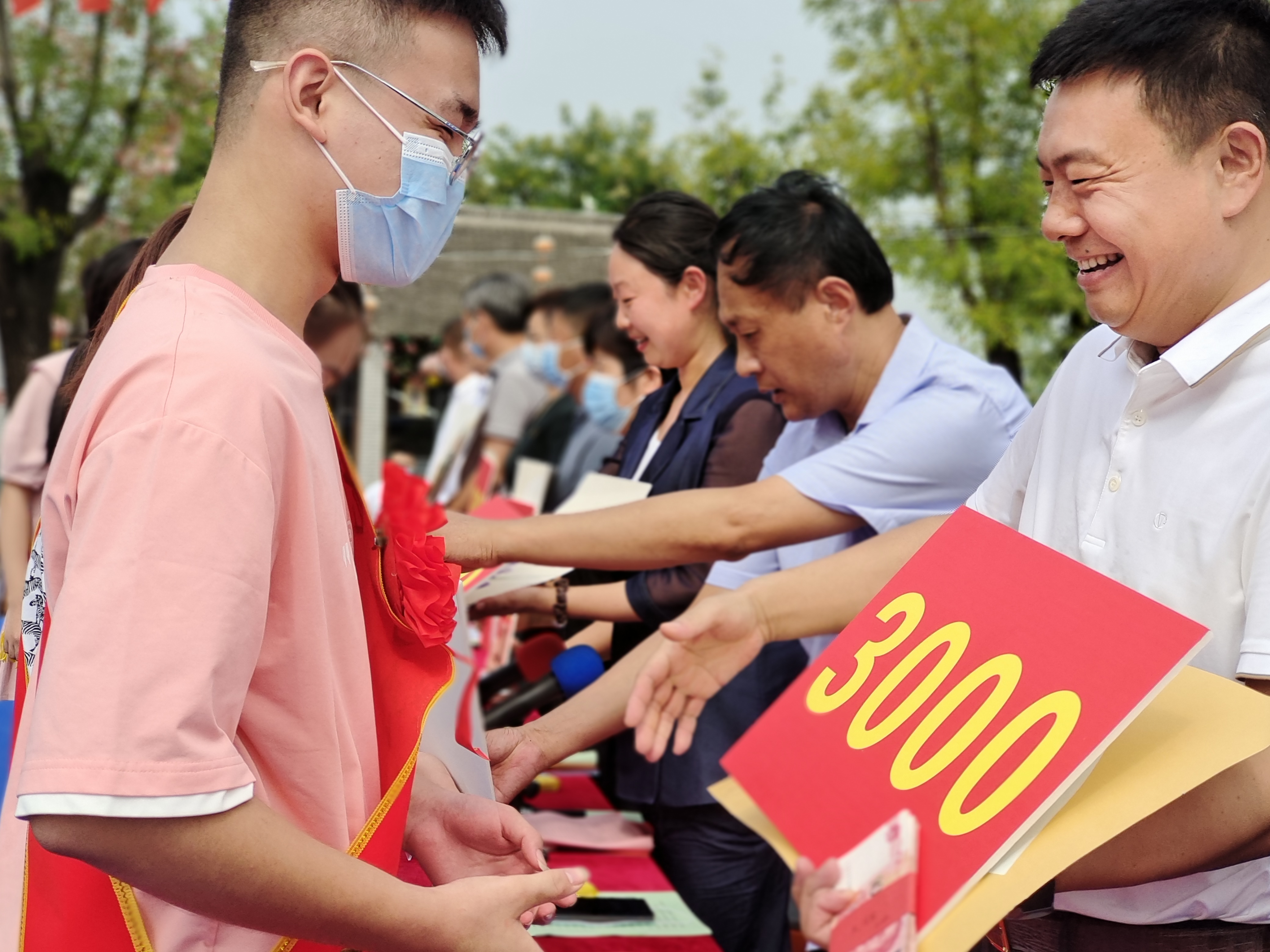 圖片說明:8月20日上午,太康縣老冢鎮(zhèn)2022年“山果”助學(xué)行動暨慶祝第38個教師節(jié)表彰大會在老冢鎮(zhèn)劉寨印象舉行,對9個尊師重教先進行政村、8個教育工作先進單位、63名優(yōu)秀教師、100名優(yōu)秀中小學(xué)生、1名2022年考入北京大學(xué)的研究生,及17名被雙一流高校錄取的大一新生進行了表彰,共發(fā)放獎學(xué)獎教資金10.36萬元,詠絮書畫院向獲獎學(xué)生贈送了書畫作品。會前,與會人員共同觀看了文藝匯演和《美麗鄉(xiāng)村看老?!芳o(jì)錄短片。