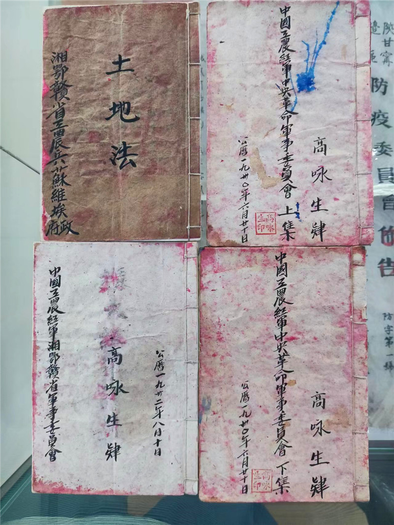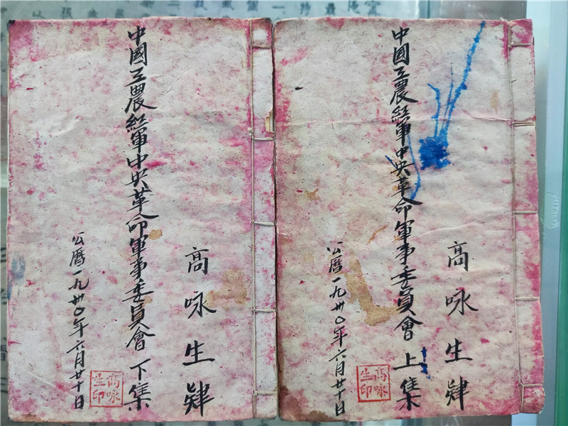 李洪東收藏的高詠生手寫筆記共有四本,包括高詠生用毛筆抄寫的公文《中國工農紅軍中央革命軍事委員會》文件上集和下集、《湘鄂贛省工農兵蘇維埃政府土地法》、1932年書寫的文件《目前擴大紅軍的計劃大綱》。文件上面都有“高詠生肄”幾個字,蓋“高詠生印”大紅印章。