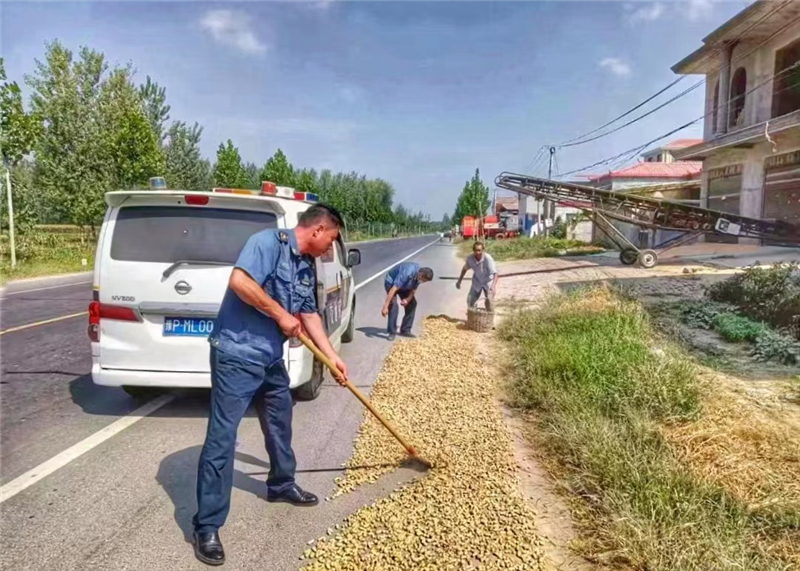 加大巡查力度,保障道路暢通。路產(chǎn)路權(quán)管理人員加強(qiáng)日常巡查養(yǎng)護(hù),采取明察暗訪與定期檢查評比相結(jié)合的方式,對全市干線公路、橋梁增加巡查頻次,將城鄉(xiāng)接合部、過村鎮(zhèn)路段、馬路市場作為治理重點,確保路面整潔、路肩邊坡整齊平順、橋梁涵洞安全暢通、附屬設(shè)施完好。特別是針對夏秋兩季易出現(xiàn)的“打場曬糧”現(xiàn)象進(jìn)行勸阻制止,多次幫助群眾挪移、收回晾曬在公路上的農(nóng)作物,充分體現(xiàn)了路產(chǎn)路權(quán)管理“以人為本”的服務(wù)理念,達(dá)到整治與教育相結(jié)合的目的。