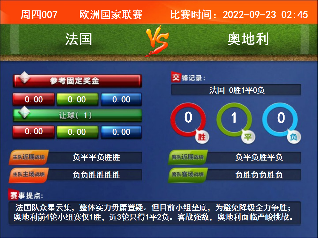 周四007 歐洲國(guó)家聯(lián)賽 法國(guó)VS奧地利