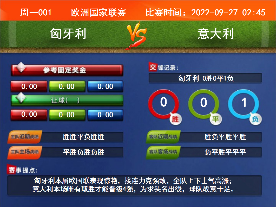 周一001 歐洲國家聯(lián)賽 匈牙利VS意大利