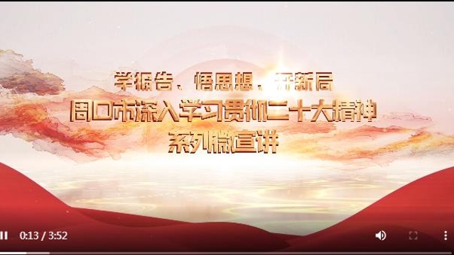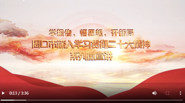 為深入學(xué)習(xí)貫徹黨的二十大精神,中共周口市委宣傳部、中共周口市委黨校和周口報(bào)業(yè)傳媒集團(tuán)共同制作“學(xué)報(bào)告 悟思想 開新局”系列宣講微視頻,將分專題陸續(xù)推出。