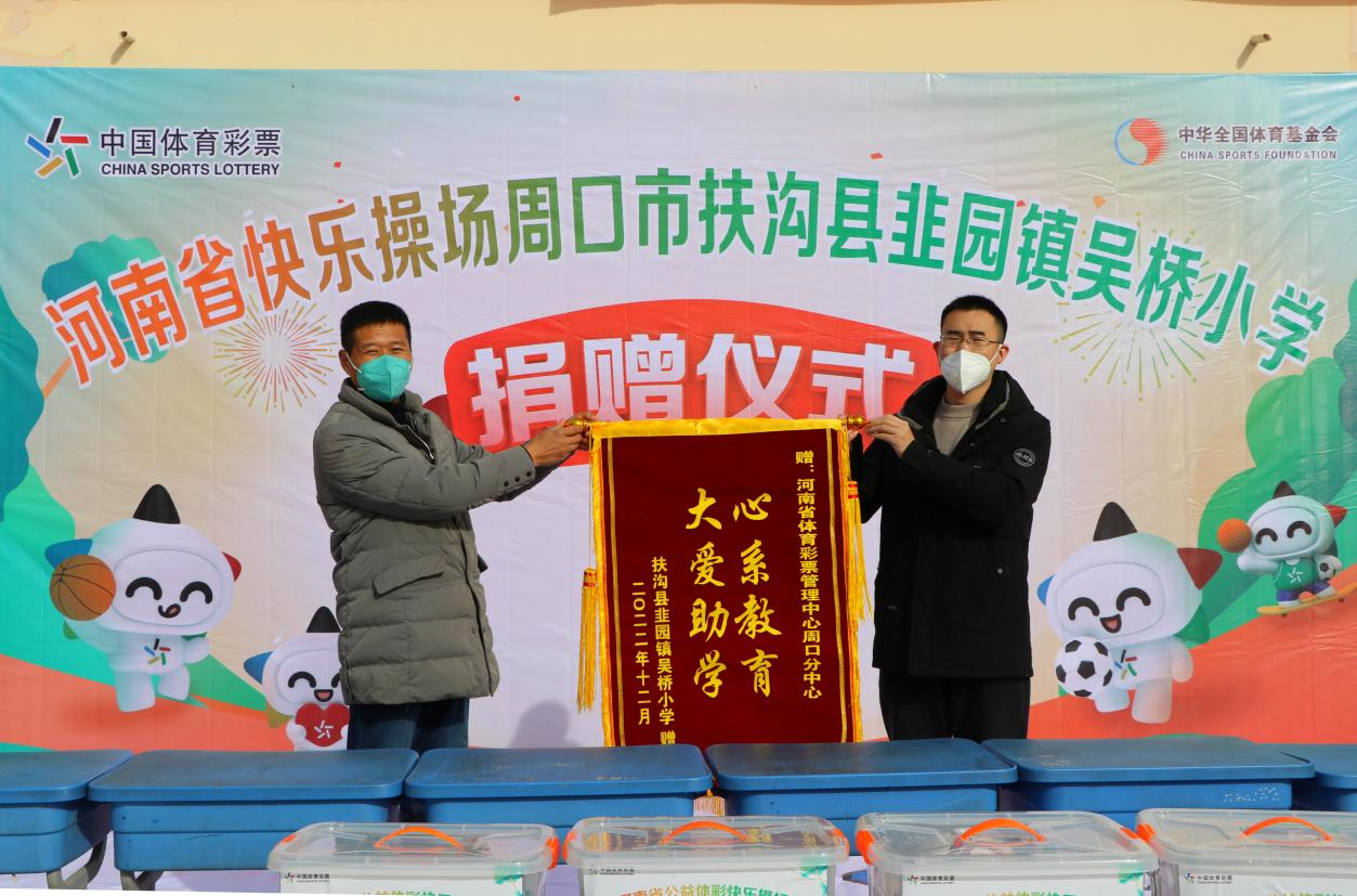 此次捐贈(zèng)的體育器材有籃球、足球、排球、乒乓球拍、羽毛球拍等價(jià)值近2萬(wàn)元的體育用品。為表達(dá)謝意,吳橋小學(xué)向周口體彩分中心贈(zèng)送了“心系教育,大愛(ài)助學(xué)”的錦旗。