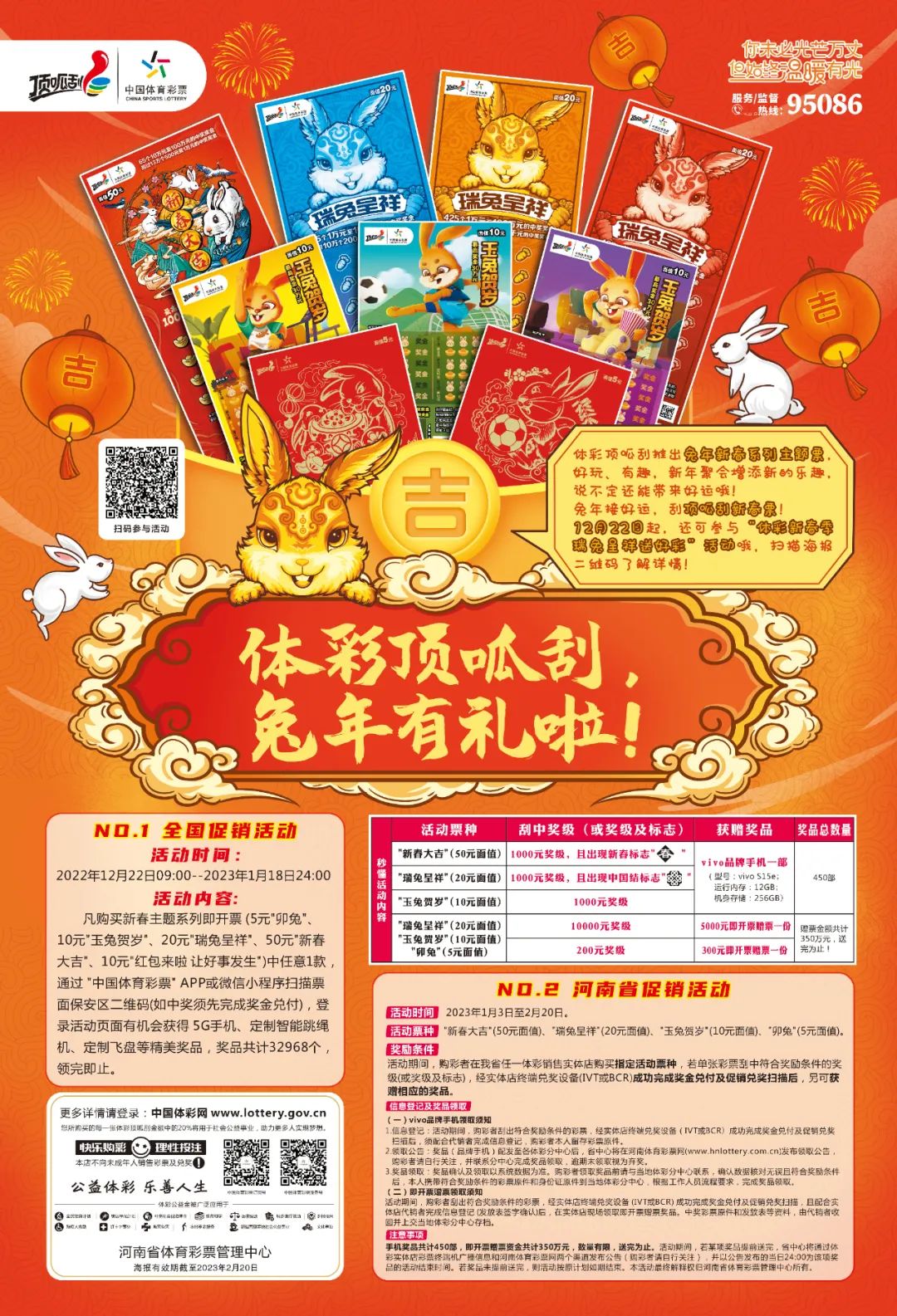 2.“體彩新春季”全國促銷活動細則詳見“中國體育彩票”微信小程序或“中國體育彩票”APP活動頁面,或登錄中國體彩網(wǎng)查詢相關信息。