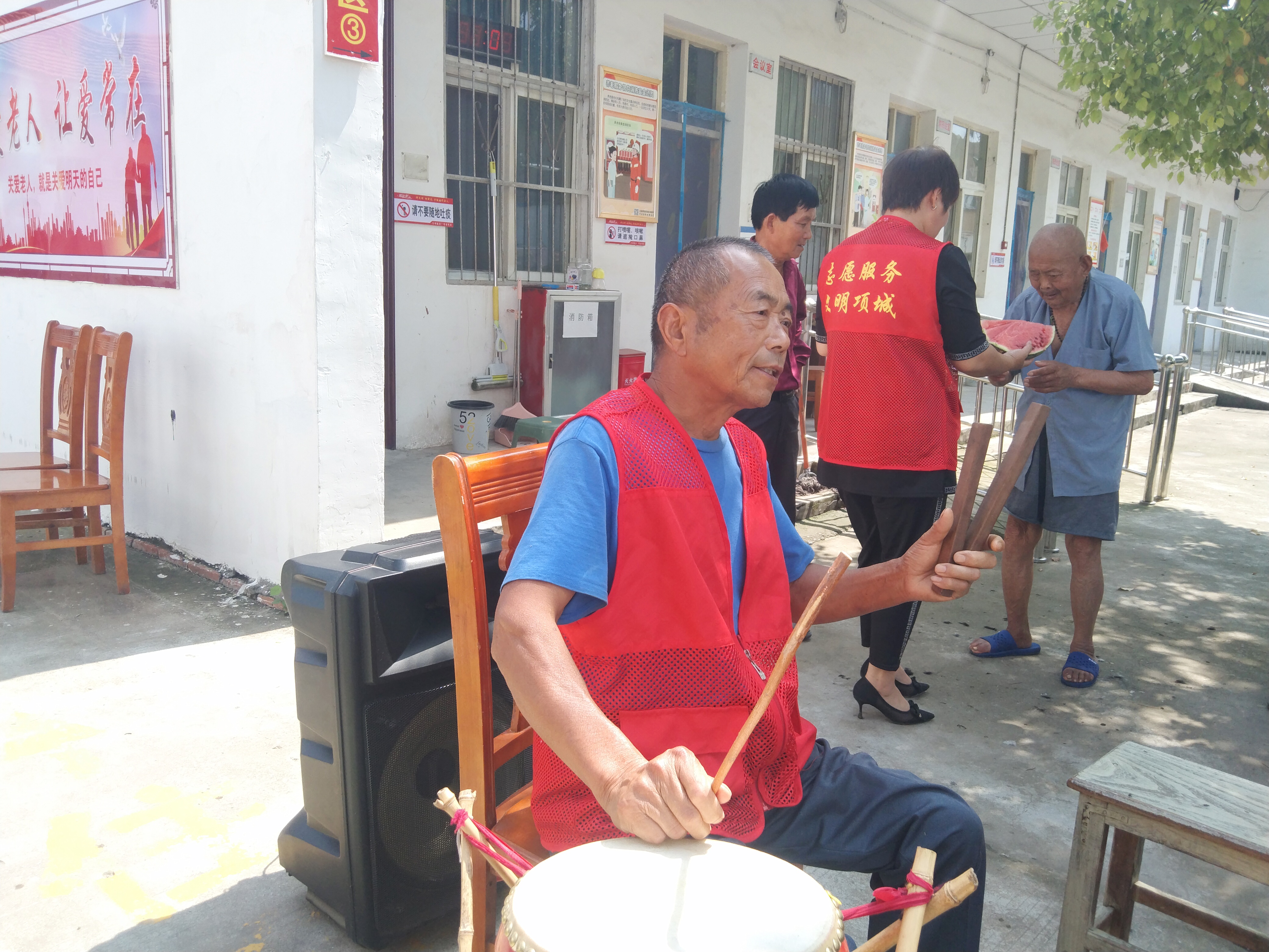 端午節(jié)將至,6月20日上午,項城市賈嶺鎮(zhèn)新時代文明實踐所金雞嶺宣講團(tuán)志愿者走進(jìn)該鎮(zhèn)敬老院,為老人們送去粽子、西瓜、糕點等愛心物品,并為老人們表演大鼓書《百善孝為先》等文藝節(jié)目,以此表達(dá)對老年人的關(guān)愛之情。