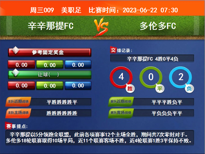 比賽時(shí)間:2023-06-22 07:30賽事提點(diǎn):辛辛那提以5分領(lǐng)跑全聯(lián)盟,此前各項(xiàng)賽事12個(gè)主場(chǎng)全勝,期間共7次零封對(duì)手。多倫多18輪聯(lián)賽取得10場(chǎng)平局,近11個(gè)聯(lián)賽客場(chǎng)不勝,近4輪聯(lián)賽1勝3平保持不敗。