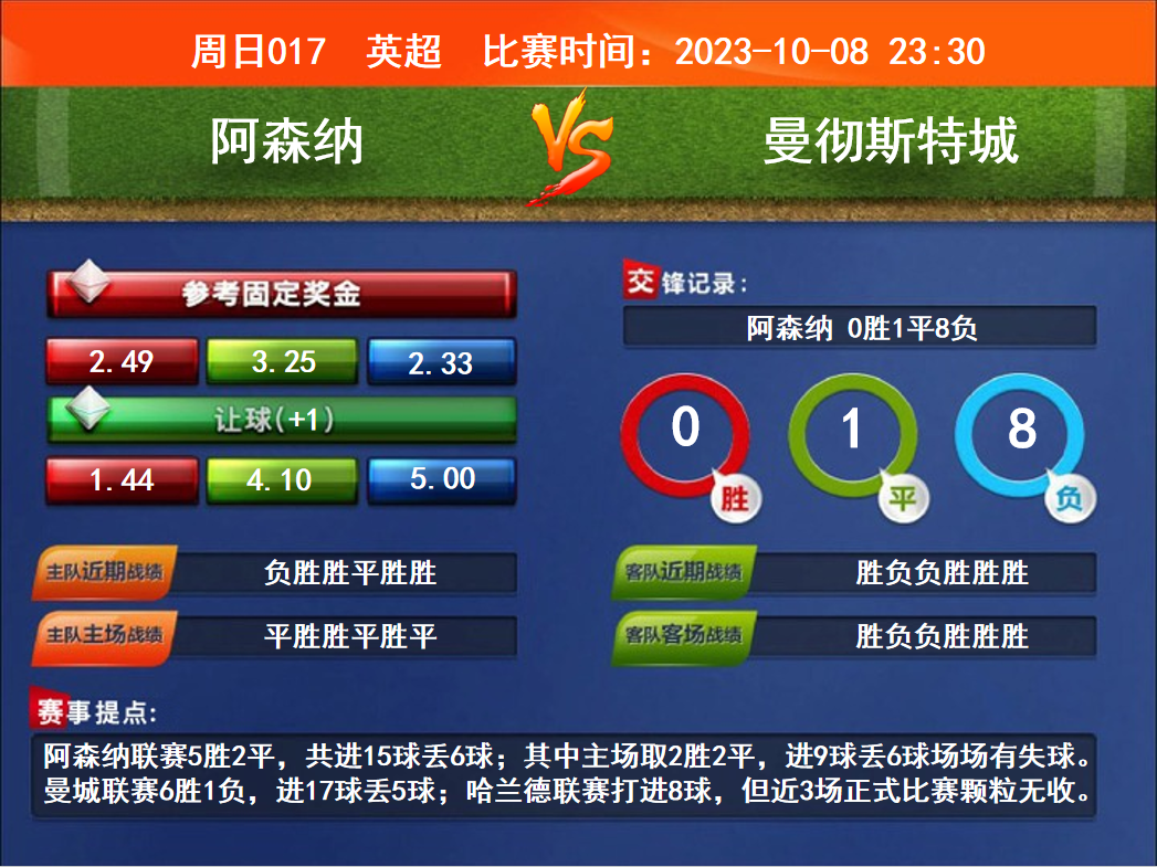 比賽時間:2023-10-08 23:30賽事提點(diǎn):阿森納聯(lián)賽5勝2平,共進(jìn)15球丟6球;其中主場取2勝2平,進(jìn)9球丟6球場場有失球。曼城聯(lián)賽6勝1負(fù),進(jìn)17球丟5球;哈蘭德聯(lián)賽打進(jìn)8球,但近3場正式比賽顆粒無收。