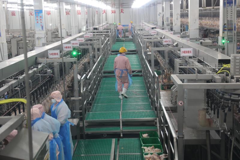 西華雙匯宰雞廠位于西華縣中都路與華安路交叉口東北角,2020年8月份開始施工建設(shè),2022年1月份建成投產(chǎn)。宰雞項目設(shè)計年屠宰肉雞1億只,雙班雙線生產(chǎn),車速2.5萬只/小時,日宰35萬只,規(guī)劃產(chǎn)品有冰鮮白條雞、雞胸肉、雞腿肉、琵琶腿、雞翅中、雞翅根、雞爪等152個品種規(guī)格,日產(chǎn)出雞產(chǎn)品875噸,其中鮮品555噸,凍品220噸,地銷、化制和煉油產(chǎn)品100噸,年產(chǎn)出雞產(chǎn)品25萬噸。屠宰的各個環(huán)節(jié)做到全程監(jiān)控,建立起“三級生物安全防控措施”,形成從檢測到屠宰等嚴(yán)格過程的控制體系,使屠宰各環(huán)節(jié)不受到污染,實現(xiàn)高度清潔的全產(chǎn)業(yè)鏈健康屠宰。產(chǎn)品從分割、包裝、入庫到配送、市場銷售整個過程嚴(yán)格在0-4℃環(huán)境中進行,保證雞肉新鮮。