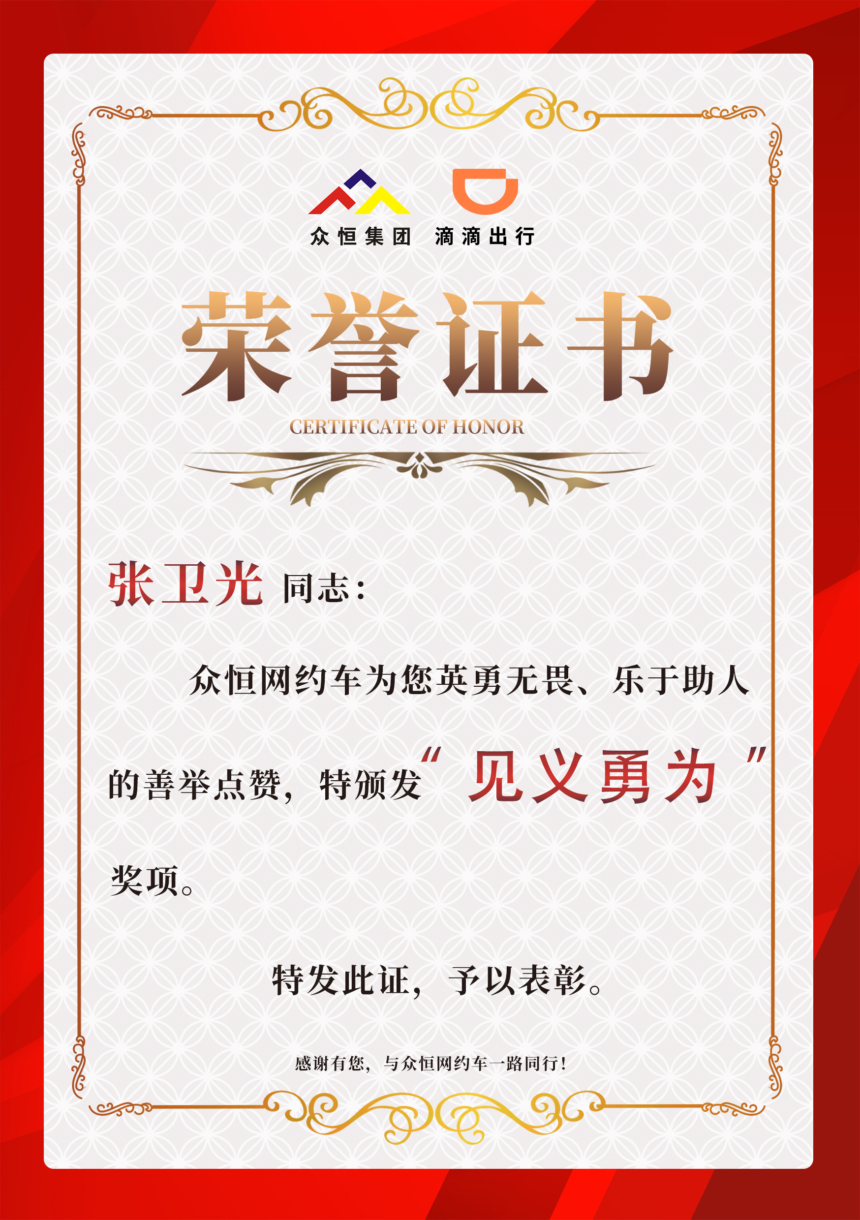 “當(dāng)時只想著救人,其他都沒顧上?!泵鎸颊呒覍俚倪B聲道謝,張衛(wèi)光顯得格外低調(diào)。他表示,作為滴滴隊(duì)長,公司定期組織的急救培訓(xùn)和應(yīng)急演練讓他在關(guān)鍵時刻能冷靜應(yīng)對,“每個司機(jī)都可能遇到類似情況,我只是做了該做的事”。周口市人大代表,市交通運(yùn)輸行業(yè)黨委委員謝華在得知此事后,對張衛(wèi)光的善舉給予高度評價并頒發(fā)榮譽(yù)證書:“張師傅用實(shí)際行動詮釋了‘服務(wù)至上’的理念,他的專業(yè)與熱心是網(wǎng)約車司機(jī)群體的縮影。”