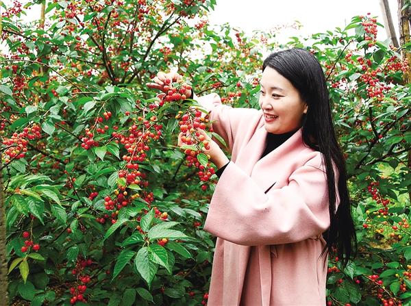丁志情直播助農(nóng)賣櫻桃。
