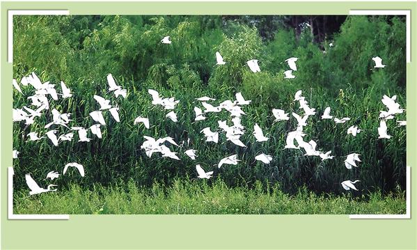 連日來,大批白鷺聚集在川匯區(qū)大慶路橋東側(cè)濕地,遠(yuǎn)遠(yuǎn)望去,百鳥飛翔,一派人與自然和諧共生的景象。何延成 攝