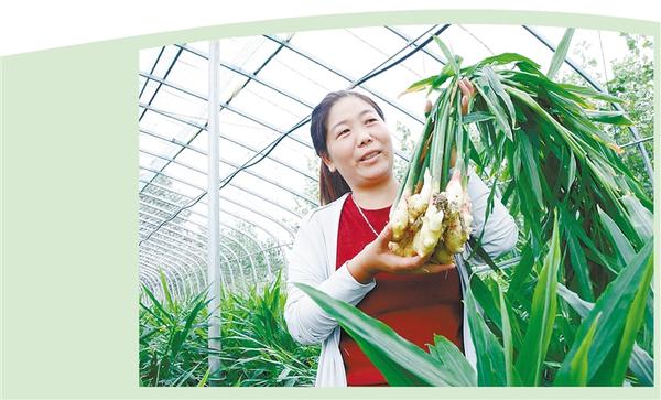 董華麗展示種植的生姜。