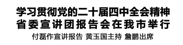 本報訊(記者 王艷 王晨) 按照省委統(tǒng)一部署,11月24日,學(xué)習(xí)貫徹黨的二十屆四中全會精神省委宣講團(tuán)報告會在我市舉行。省委宣講團(tuán)成員,省交通運(yùn)輸廳黨組書記、廳長付磊作宣講報告。市委書記黃玉國主持報告會,市長詹鵬出席。