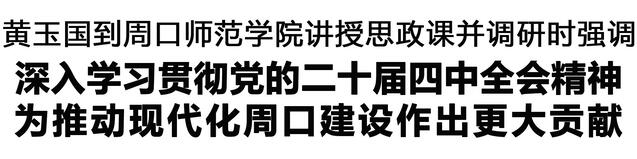 本報(bào)訊 (記者 王艷 劉昂) 12月19日,市委書記黃玉國(guó)到周口師范學(xué)院為師生代表講授思政課,宣講黨的二十屆四中全會(huì)精神,并到教學(xué)科研一線調(diào)研。