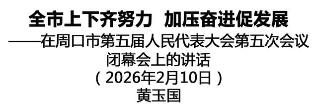 ——在周口市第五屆人民代表大會(huì)第五次會(huì)議閉幕會(huì)上的講話 (二〇二六年二月十日) ? 黃玉國