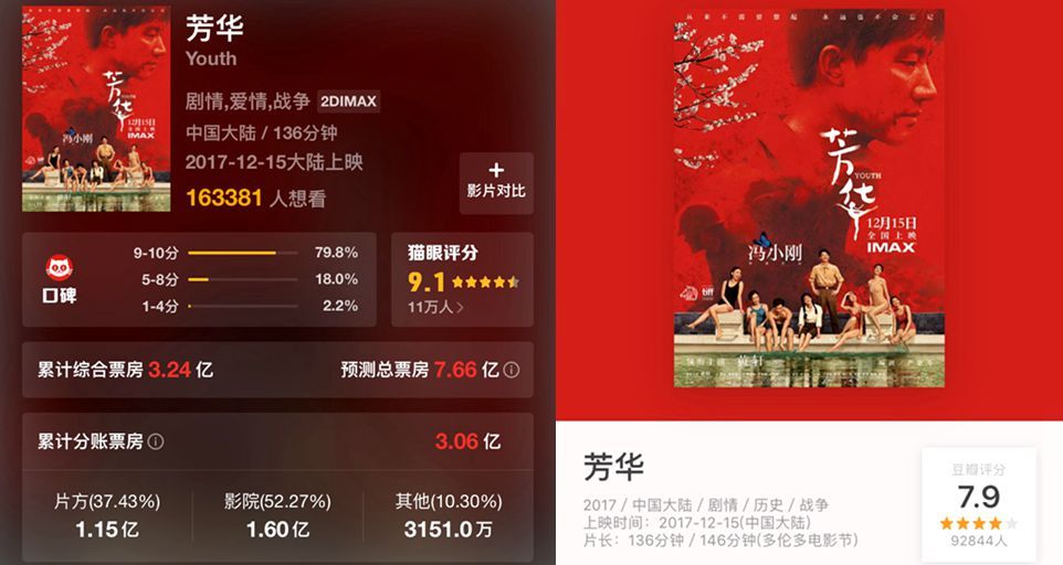 國(guó)慶檔因?yàn)槠犹?,除了《羞羞的鐵拳》遙遙領(lǐng)先外,口碑不錯(cuò)的《英倫對(duì)決》、《追龍》、《縫紉機(jī)樂(lè)隊(duì)》的票房都遭到了擠壓。熱度很高的《空天獵》也一樣。最終,這五部電影的票房分別是20.07億、5.38億、5.75億、4.57億、3.18億?!?a href="http://www.dasangmen.net/content/2017-12/18/content_604326.htm" target="_blank" >[詳細(xì)]