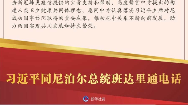 習近平指出,新冠肺炎疫情發(fā)生后,中尼兩國堅定支持彼此抗疫努力,深入開展抗疫合作,彰顯了守望相助、同舟共濟的精神。