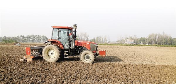 11月9日,在淮陽區(qū)高標準農田示范區(qū),一臺東方紅拖拉機牽引著復式播種機在地里穿梭。