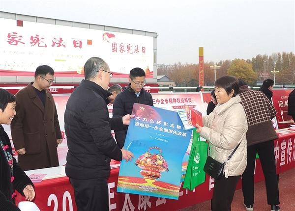 近日,太康多個單位在縣人民廣場舉行“12·4”國家憲法日集中宣傳活動,向廣大群眾普及憲法知識,引導(dǎo)廣大群眾牢固樹立憲法意識、維護(hù)憲法權(quán)威??h長張峰,縣領(lǐng)導(dǎo)邱范卉、劉鳳芹、王洪彬、史耀閣等到場參觀指導(dǎo)。