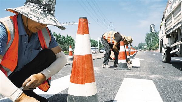 連日來,西華縣華興大道、中原路升級改造項目建設如火如荼。項目完工后,將進一步提升道路通行能力,助力城市“顏值”與品質雙升級。圖為工人在施工現(xiàn)場固定反光錐。