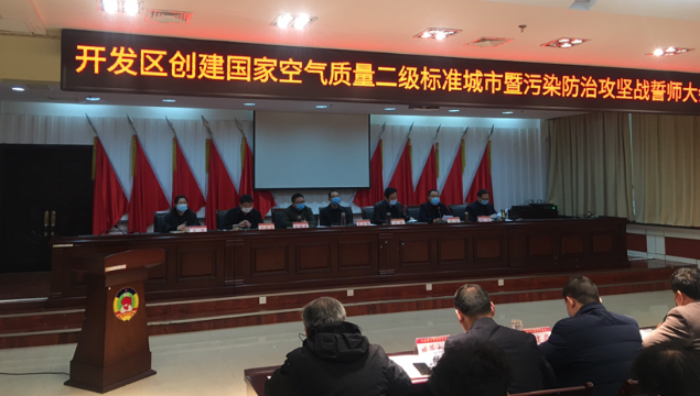 3月13日,開(kāi)發(fā)區(qū)召開(kāi)創(chuàng)建國(guó)家空氣質(zhì)量二級(jí)標(biāo)準(zhǔn)城市暨污染防治攻堅(jiān)戰(zhàn)誓師大會(huì)。