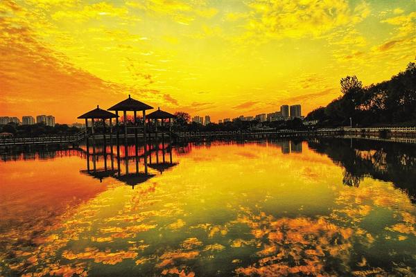 12月18日傍晚,周口公園在夕陽的照耀下呈現(xiàn)出迷人景象。