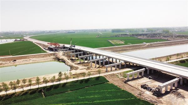 建設(shè)大道東延項目完工后,將有效改善周口市中心城區(qū)交通狀況,提升城市形象,促進地方經(jīng)濟社會高質(zhì)量發(fā)展。圖為4月14日,正在緊張施工的建設(shè)大道東延項目新運河橋工程。
