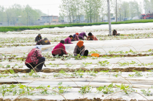 昨日,瓜農(nóng)正在為西瓜苗壓秧、修剪。在周營(yíng)鄉(xiāng)趙寨村,大棚種植戶王中紅種植的溫棚覆膜西瓜,由于種植科學(xué)、品種優(yōu),所以長(zhǎng)勢(shì)喜人,預(yù)計(jì)5月中旬就能上市。(記者 韋偉 通訊員 王祥宇 幺佳 攝)