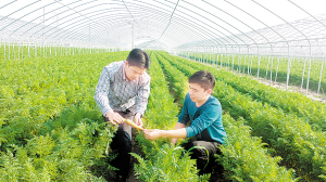 在扶溝縣汴崗鎮(zhèn)越秀蔬菜種植園區(qū),技術(shù)人員正在查看胡蘿卜長勢。該鎮(zhèn)大力推進種植業(yè)結(jié)構(gòu)調(diào)整,流轉(zhuǎn)1300多畝耕地,建成了全國最大面積的單片反季節(jié)胡蘿卜種植基地,預(yù)計每畝產(chǎn)值可達萬元。(記者 王泉林 攝)