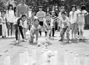 安徽亳州:留守兒童大學校園歡樂迎“六一”       5月24日,在安徽省亳州職業(yè)技術學院,幾名留守兒童在玩“保齡球”游戲。當日,安徽省亳州職業(yè)技術學院邀請譙城區(qū)牛集鎮(zhèn)安溜小學50多名留守兒童來到大學校園,開展“放飛夢想迎六一”主題活動。大學生與孩子們一起進行了各種趣味游戲,讓孩子們提前過了一個開心的“六一”兒童節(jié)。新華社發(fā)