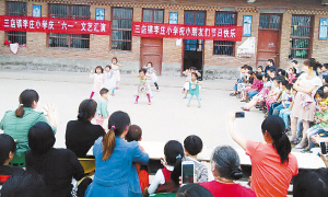 左圖 兒童節(jié)前夕,項城市積極組織小學、幼兒園開展慶“六一”活動,讓小朋友享受更多的歡樂和溫暖。圖為三店鎮(zhèn)李莊小學的孩子正在表演節(jié)目。(張永久 攝)