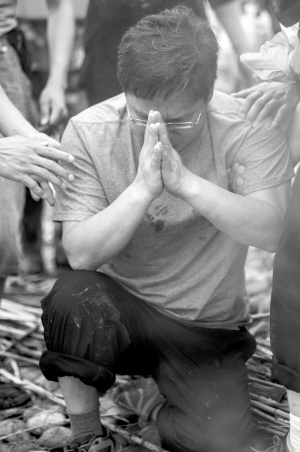 哀悼遇難者活動持續(xù)了三分鐘,隨后,救援人員繼續(xù)投入工作,盡全力搜尋遇難者。