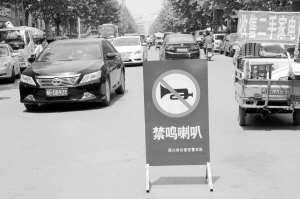 圖②我市各考點外設(shè)置了禁鳴喇叭警示牌。