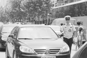 圖①交警維持考點外道路交通秩序。