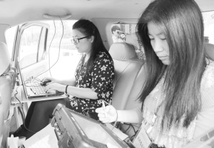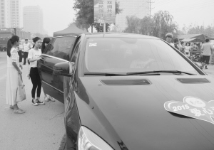 圖④沈丘縣三名考生準備乘坐“志遠愛心車隊”的車輛前往考點。